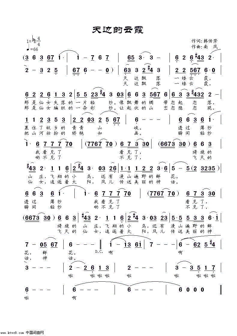 - [歌谱] 天边的云霞