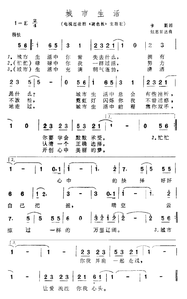 生活之歌 电视剧 小城的故事 主题歌
