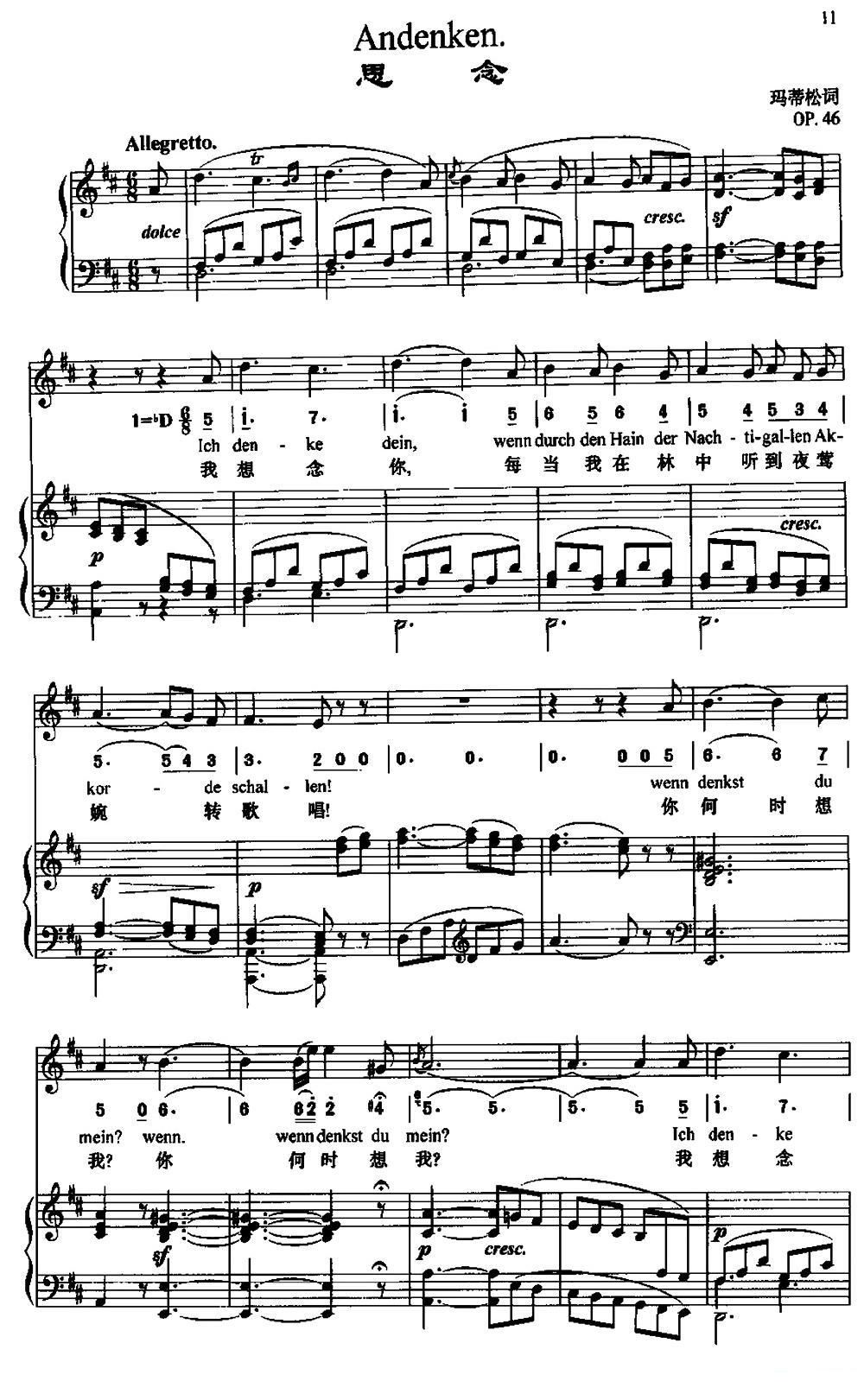 Wonne der Wehmut 忧伤的欢乐 中外文对照