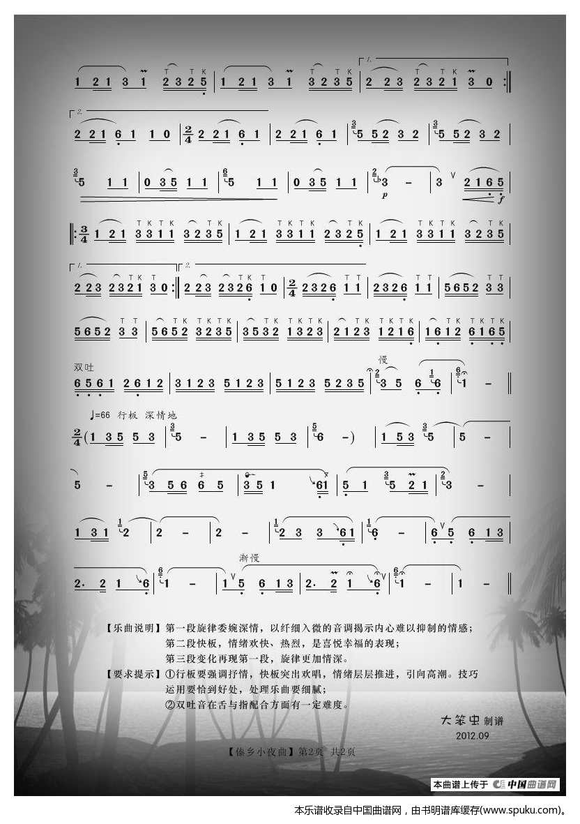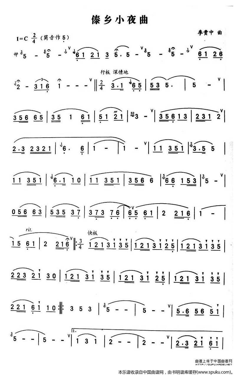 - [葫芦丝谱] 傣乡小夜曲精确谱