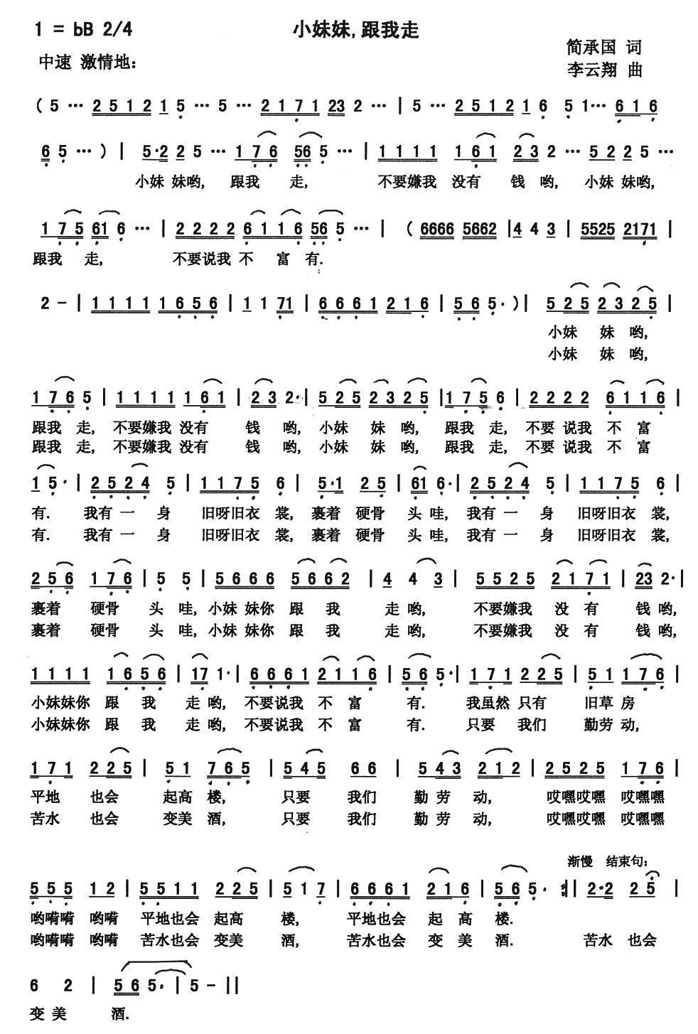 - [歌谱] 跟着妹妹走