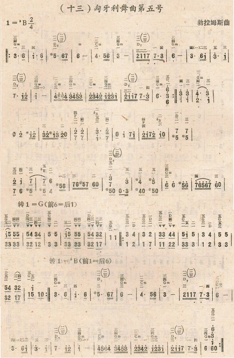 - [歌谱] 匈牙利舞曲第五号