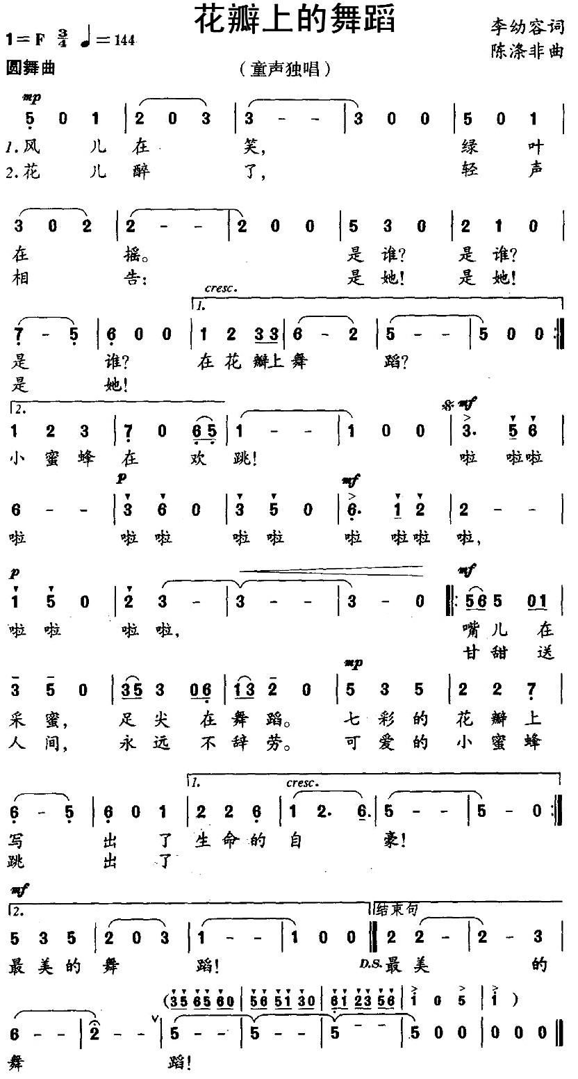 - [歌谱] 花瓣小船
