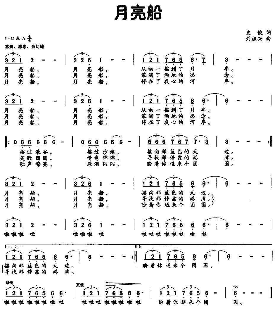 - [歌谱] 月亮船