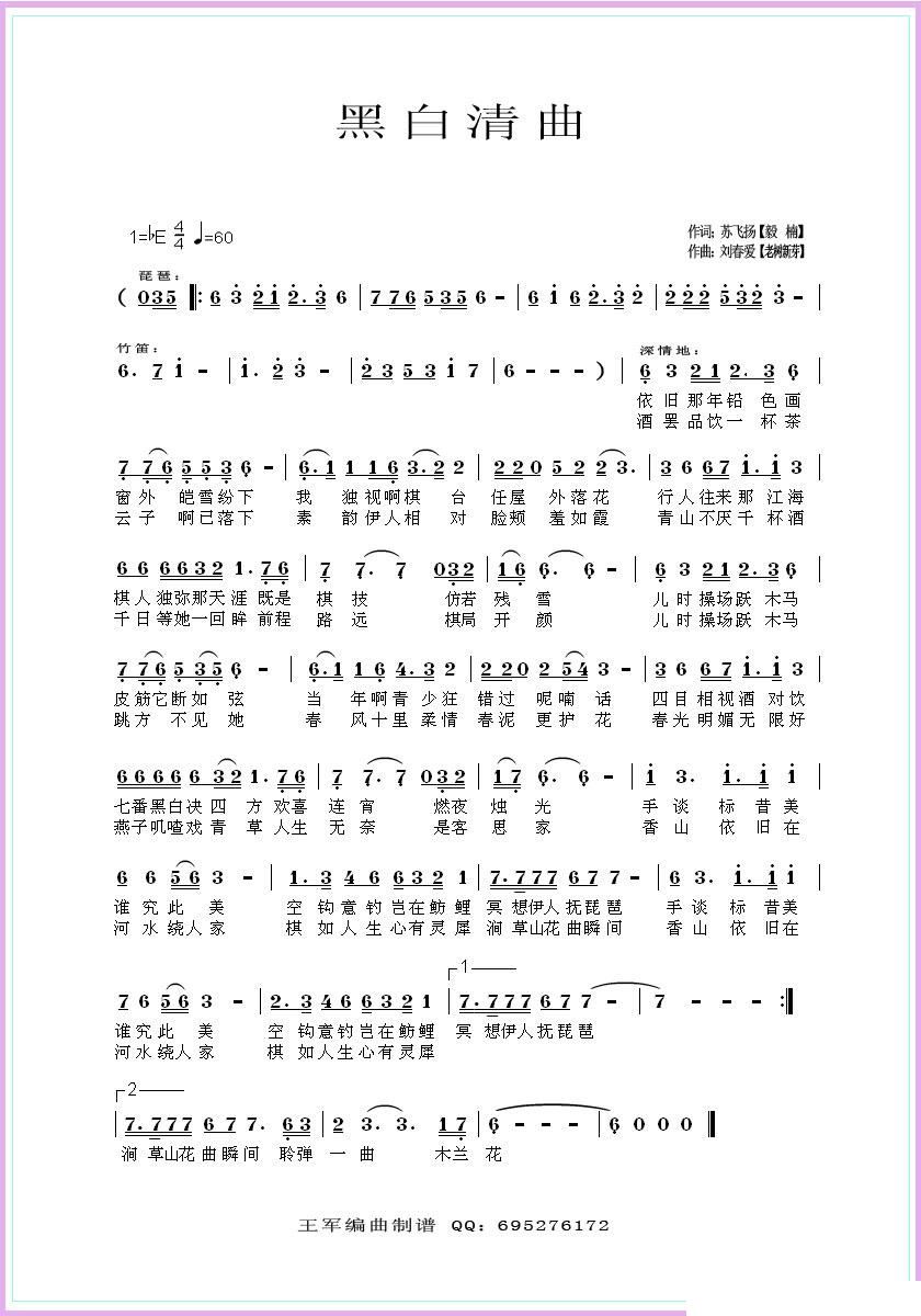 - [歌谱,葫芦丝谱] 黑白情韵