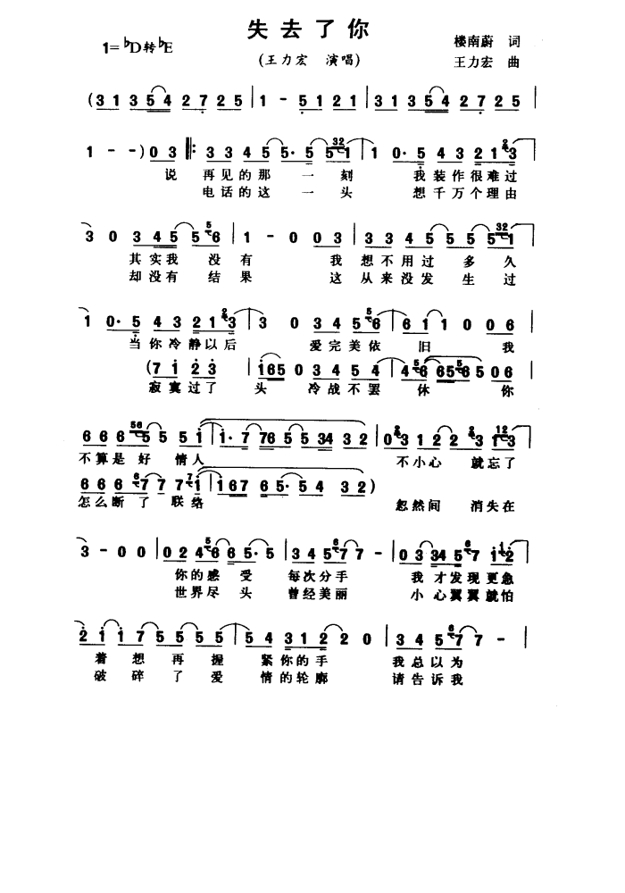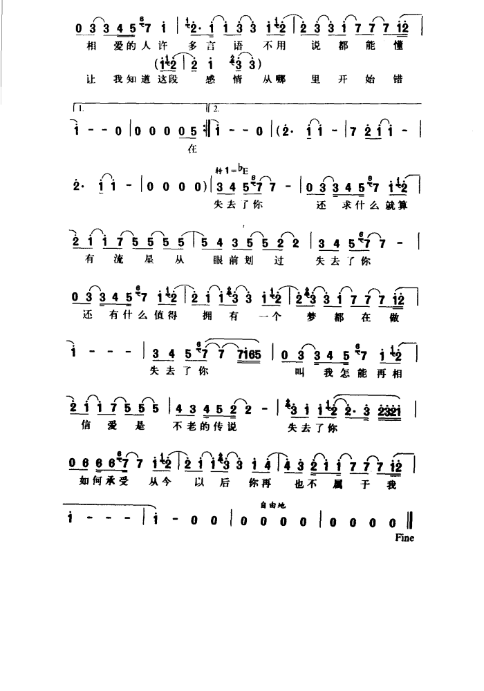 - [歌谱] 失去了你