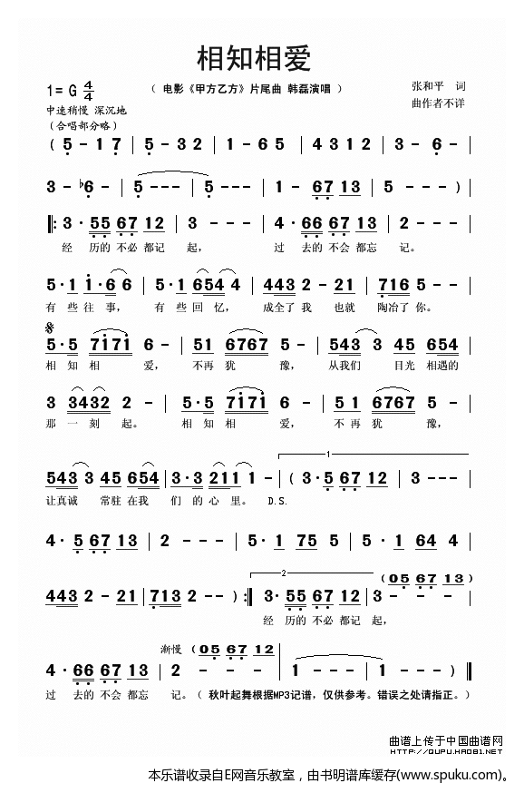 相知相爱 韩磊 电影 甲方乙方 片尾曲