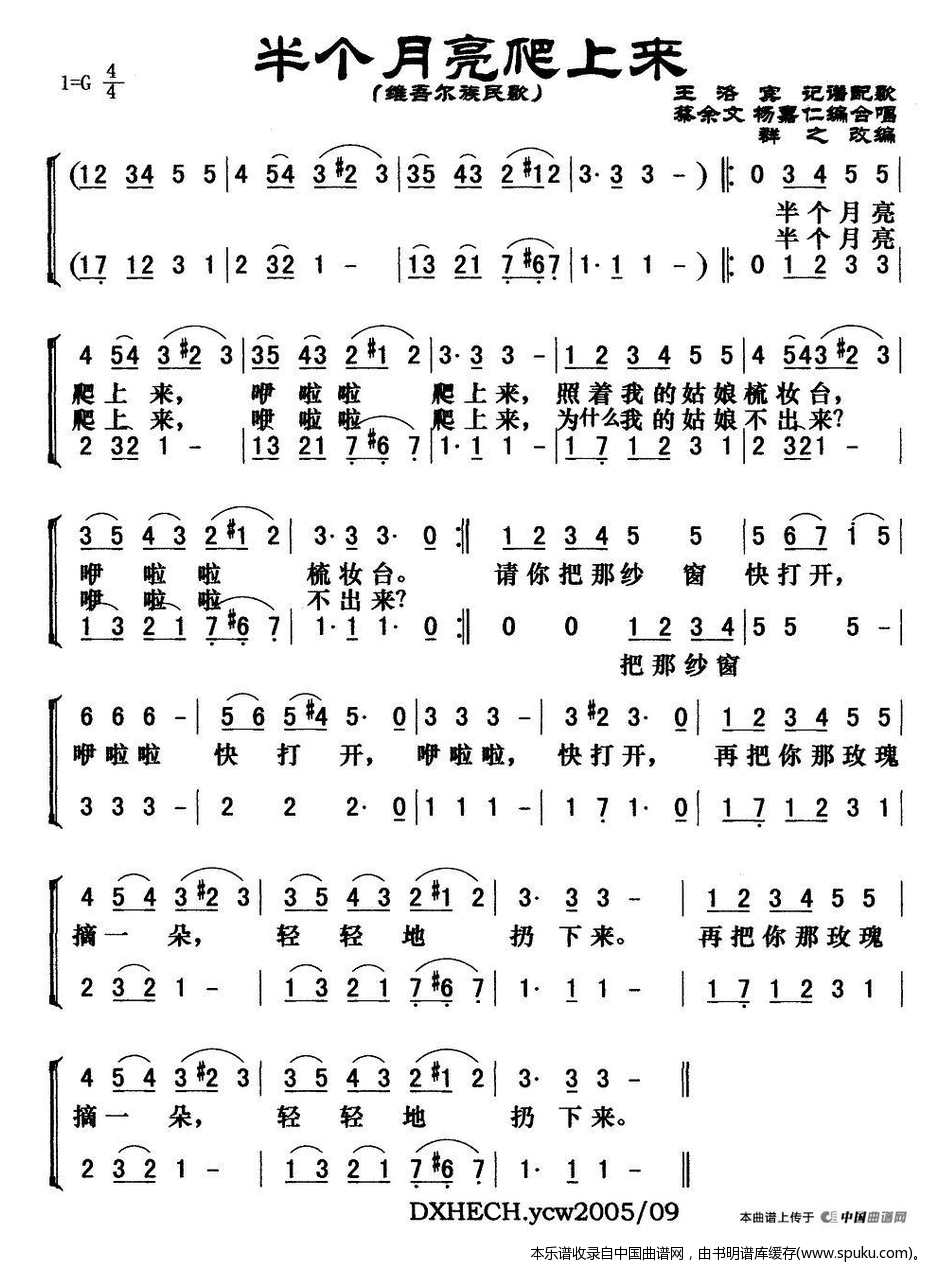 > 半个月亮爬上来 群之编合唱版 合唱谱