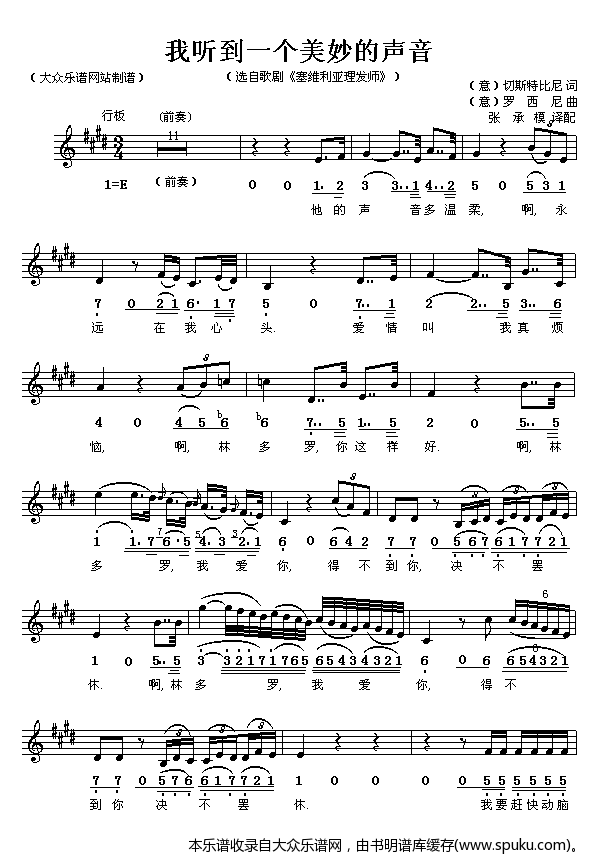 意 罗西尼歌剧 塞维利亚理发师 选曲 我听到一个美妙的声音
