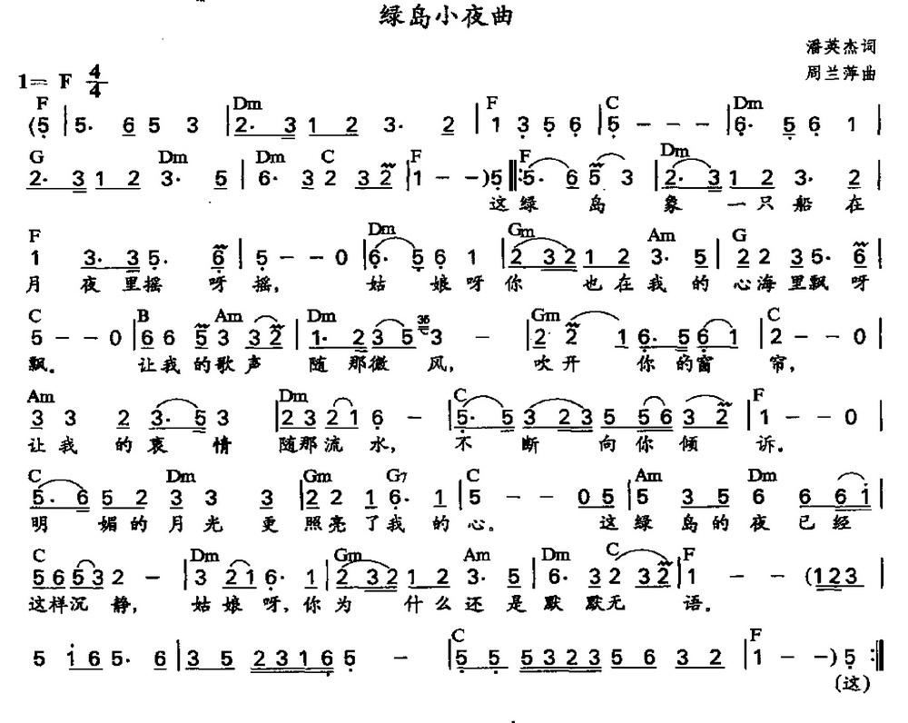 绿岛小夜曲 胡新德配和弦