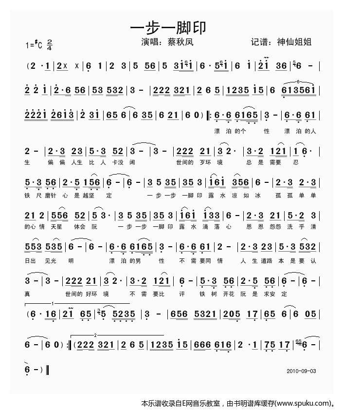 - [歌谱] 一步一脚印 蔡秋凤