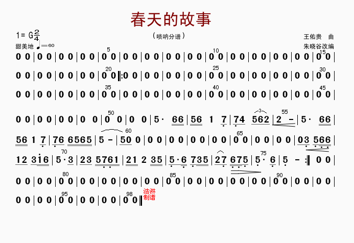 - [分谱,唢呐谱] 春天的故事 唢呐