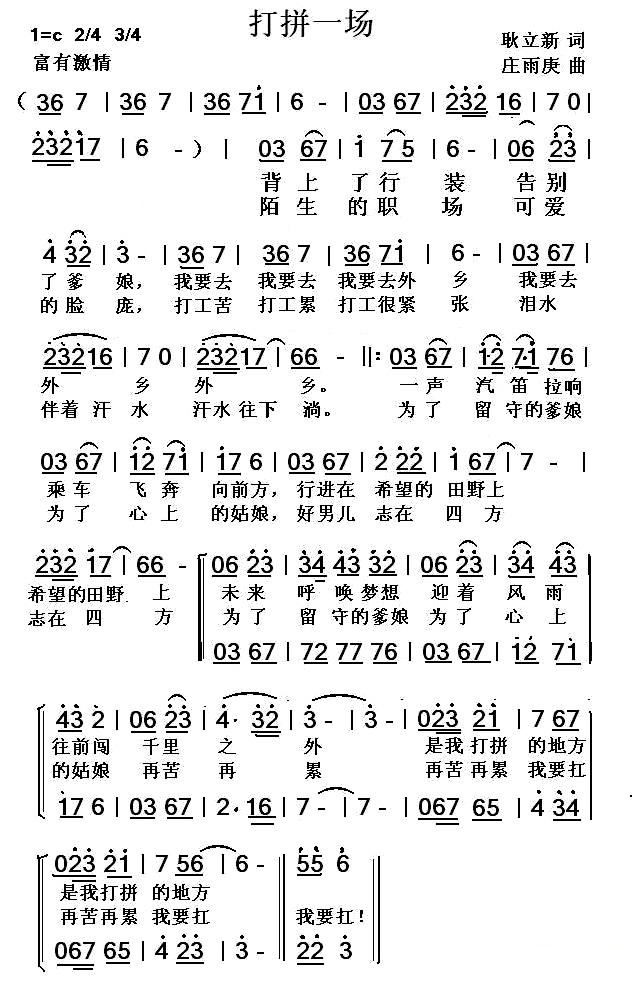 - [歌谱] 为了那份执着 献给辛勤劳动的人们