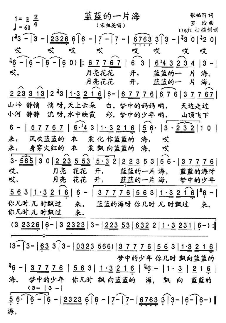 - [歌谱] 蓝蓝的天蓝蓝的海