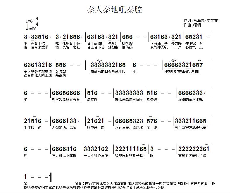 - [歌谱,秦腔谱] 吼秦腔