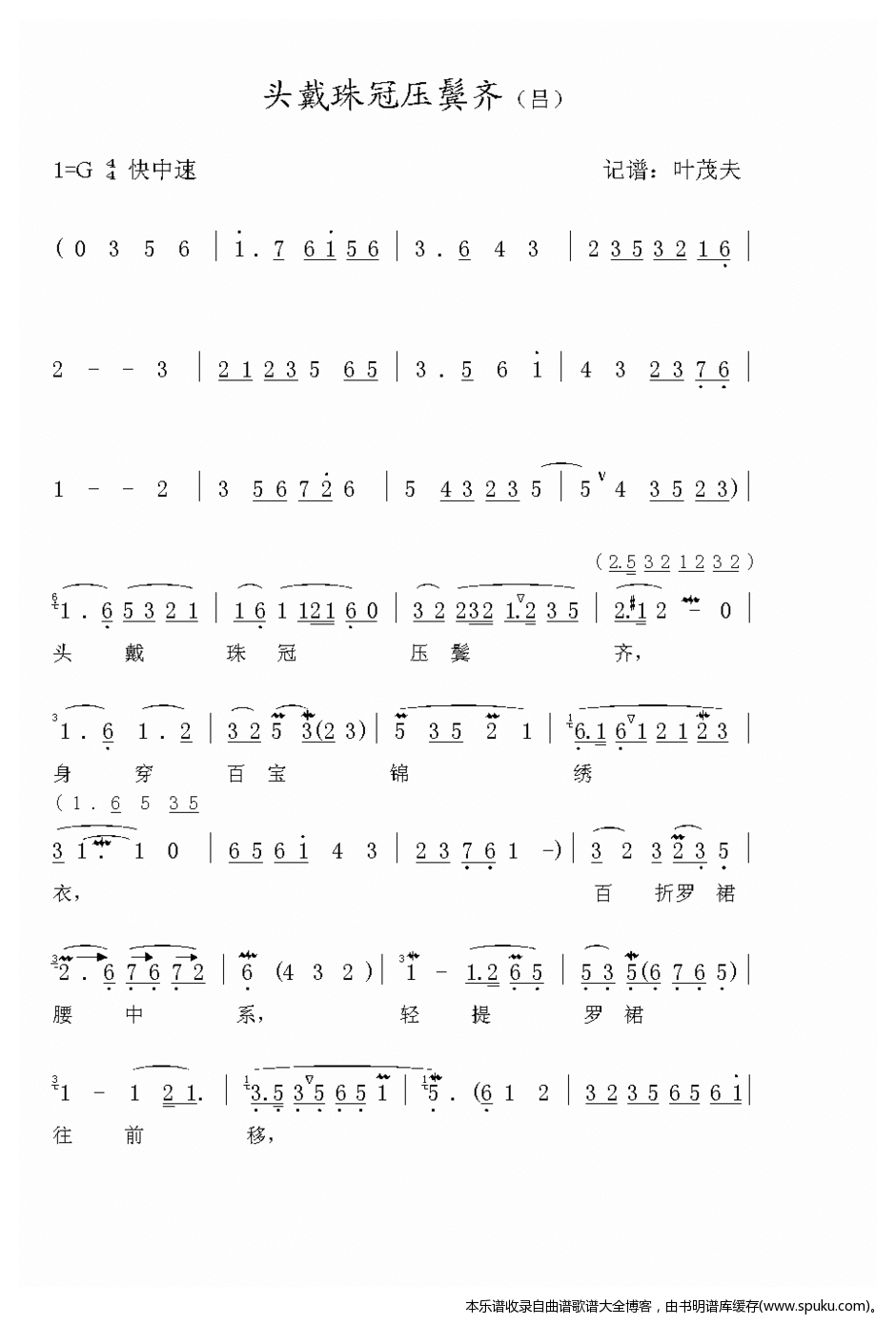 > 越剧 头戴珠冠压鬓齐 戏谱