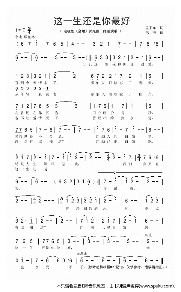 这一生还是你最好 电视剧 金婚 片尾曲