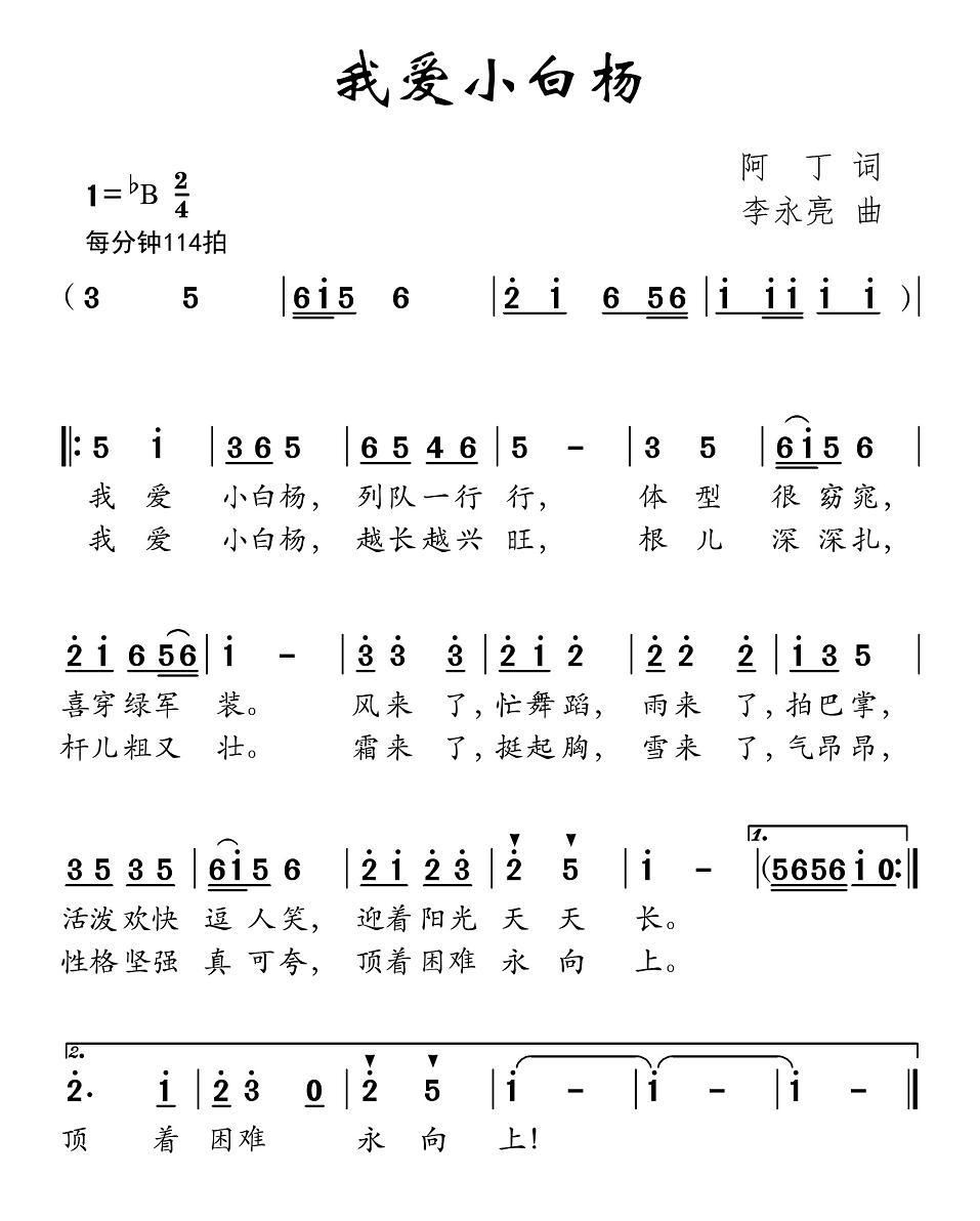 - [歌谱] 可爱的小白杨 儿童歌曲