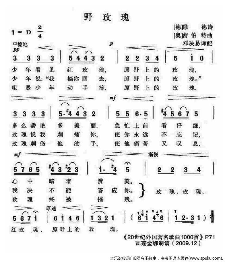 - [钢琴谱] 野玫瑰 PK舒伯特