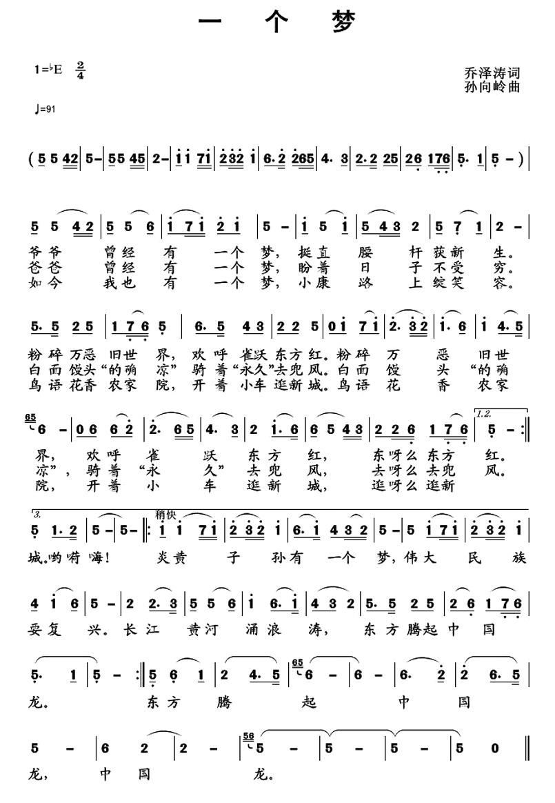 - [歌谱] 一个梦
