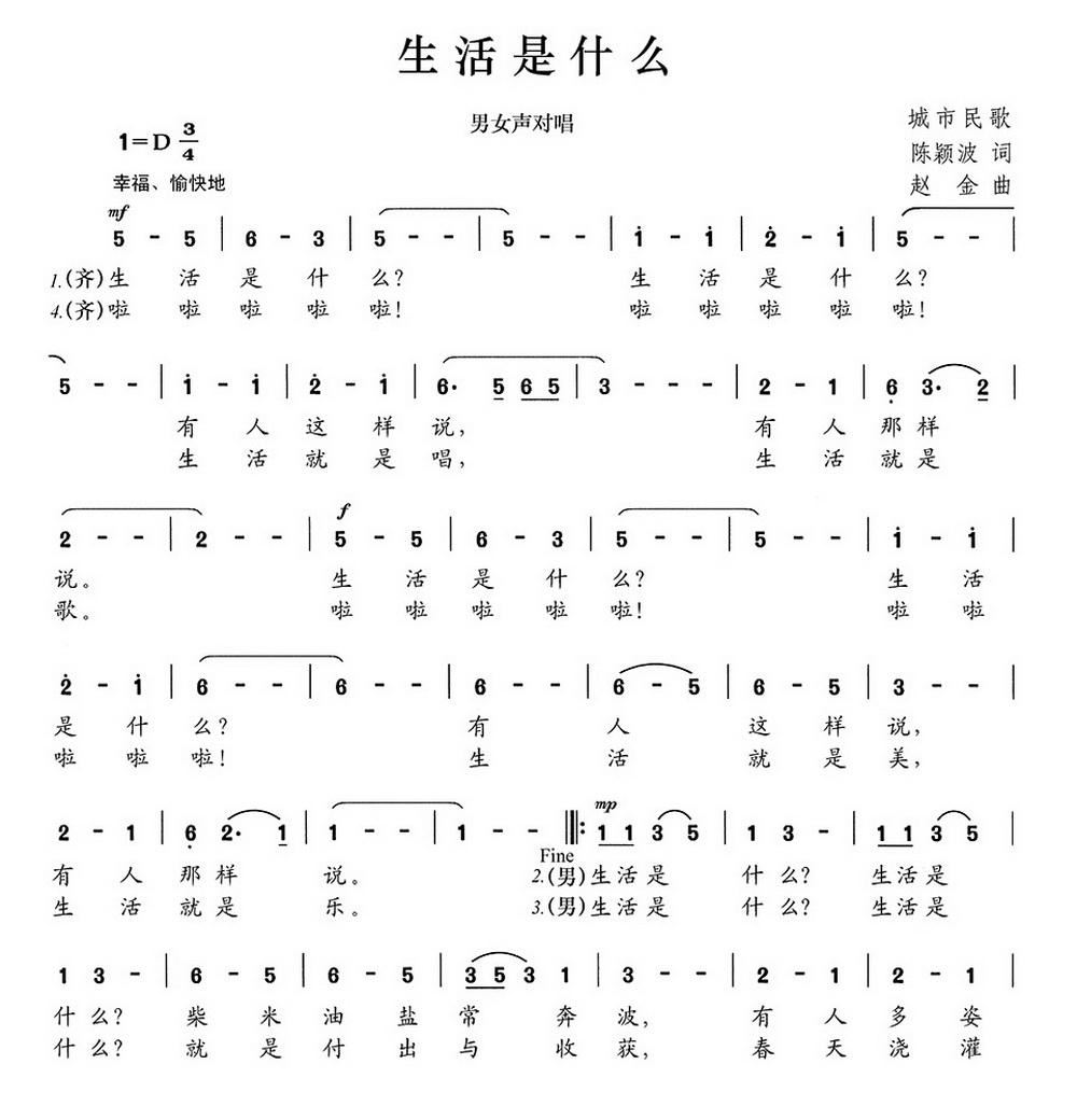 - [歌谱] 生活是什么