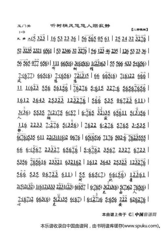 > 听树梢风悠悠人烟寂静 玉门关 选段 琴谱 京剧戏谱