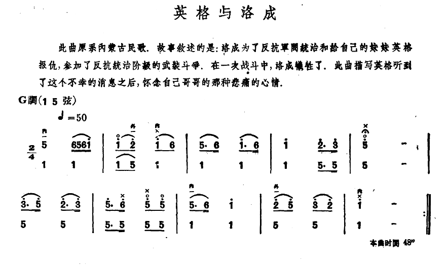 > 英格与洛成 内蒙四弦独奏曲