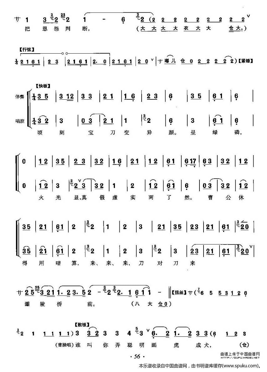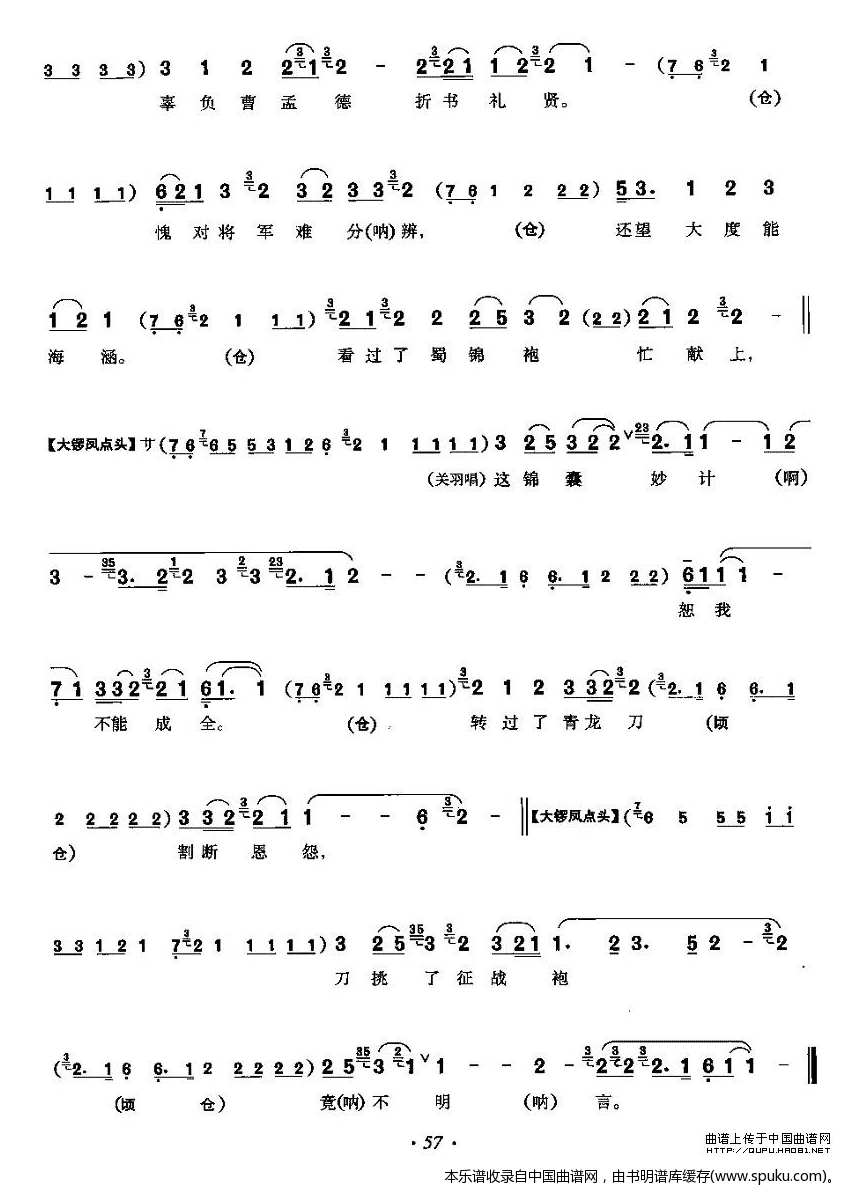 催马再次曹府往 灞陵桥 关羽唱段 唱谱