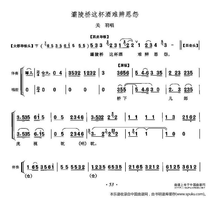 灞陵桥这杯酒难辨恩怨 灞陵桥 关羽唱段 唱谱