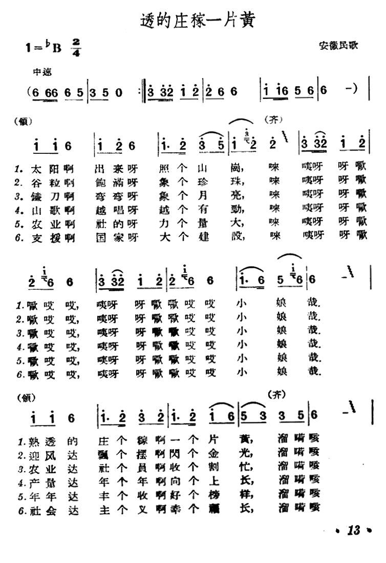 > 熟透的庄稼一片黄 安徽民歌