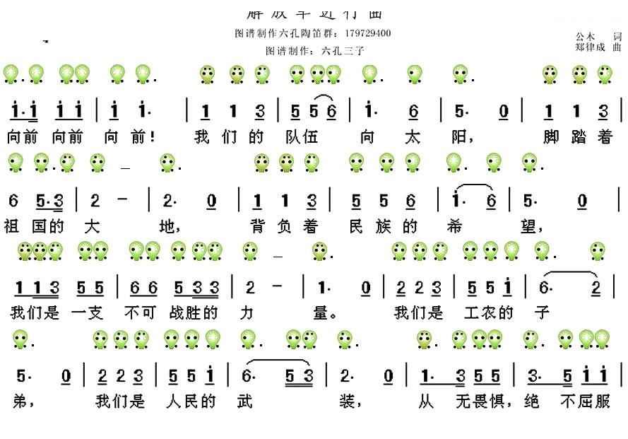 - [笛子谱,陶笛谱] 解放军进行曲 六孔