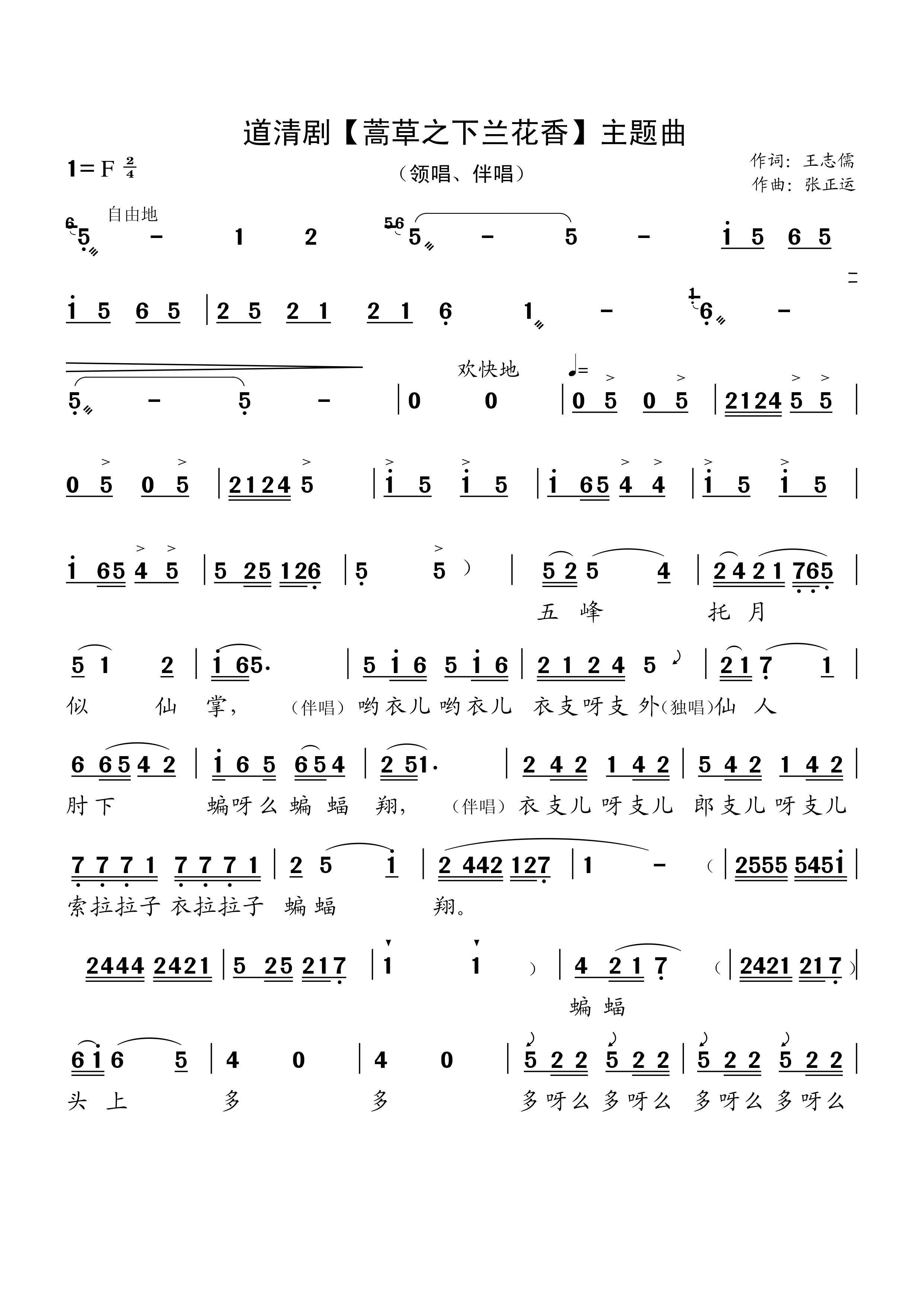 - [歌谱] 蒿草之下兰花香 主题歌 女声独唱