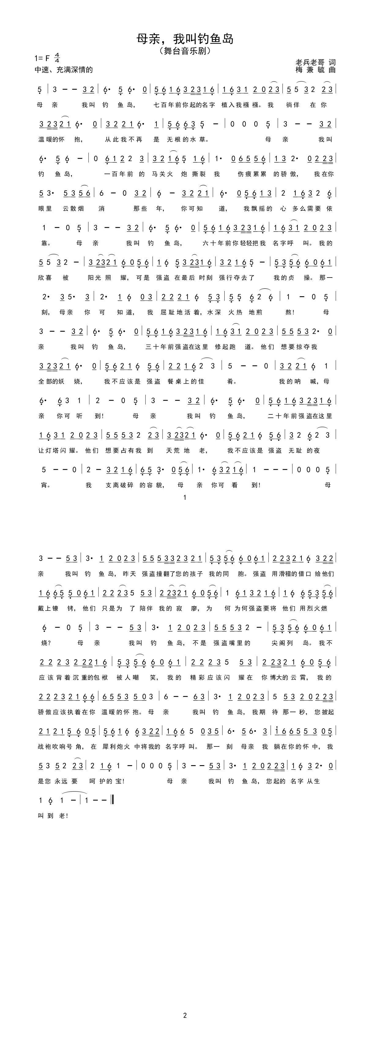 - [歌谱] 我叫钓鱼岛我叫钓鱼台