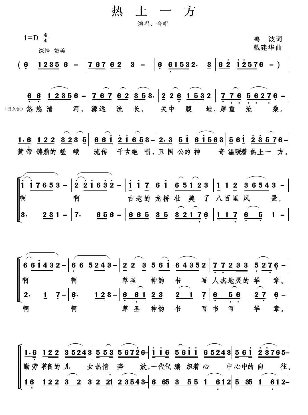 - [歌谱] 一方热土 电视剧 这一方热土 主题歌