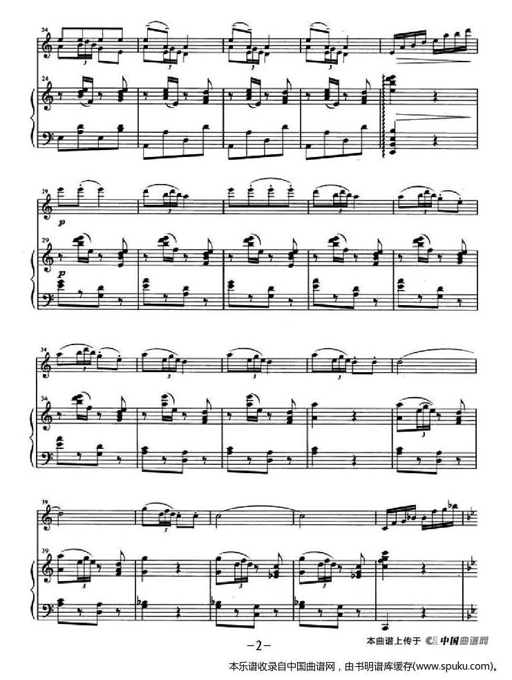 - [钢琴谱,小提琴谱] 山歌 小提琴 钢琴伴奏