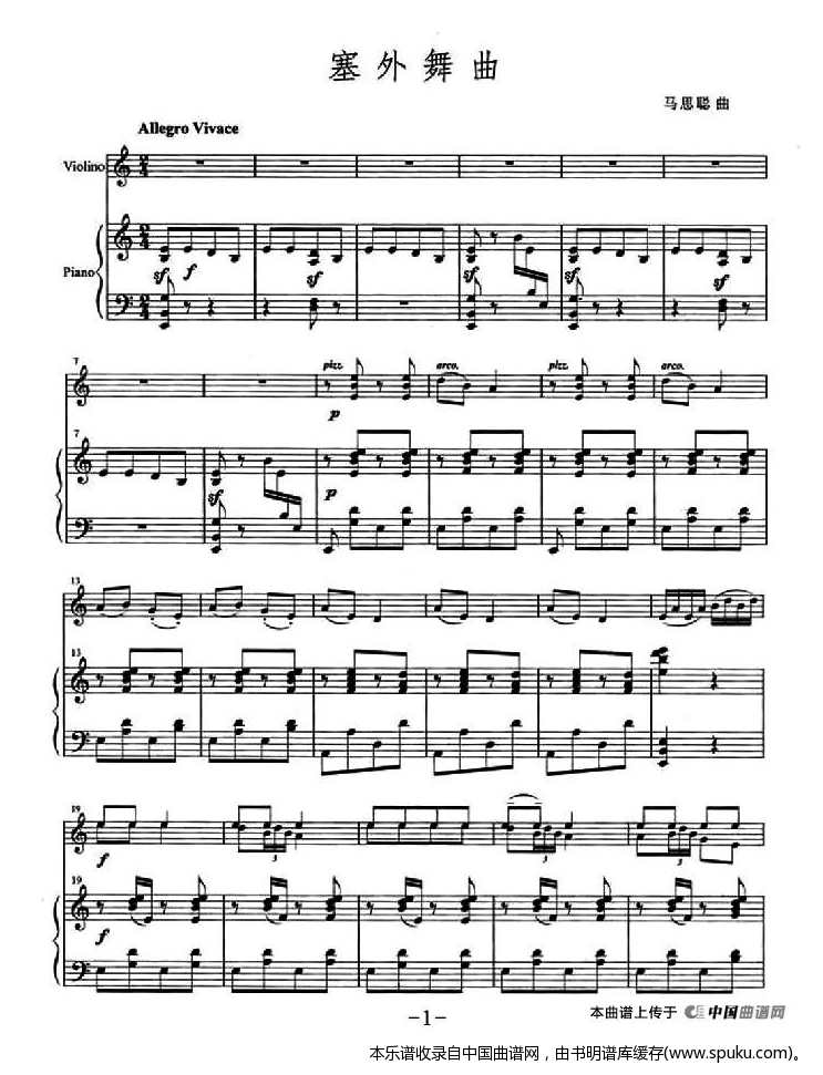 - [钢琴谱,小提琴谱] 塞外舞曲 小提琴 钢琴伴奏