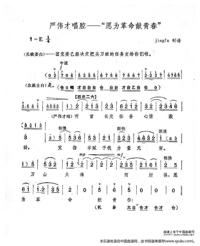 > 愿为革命献青春 奇袭白虎团 严伟才唱段 京剧戏谱