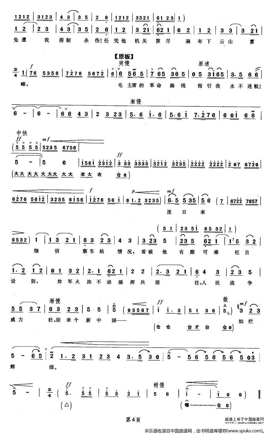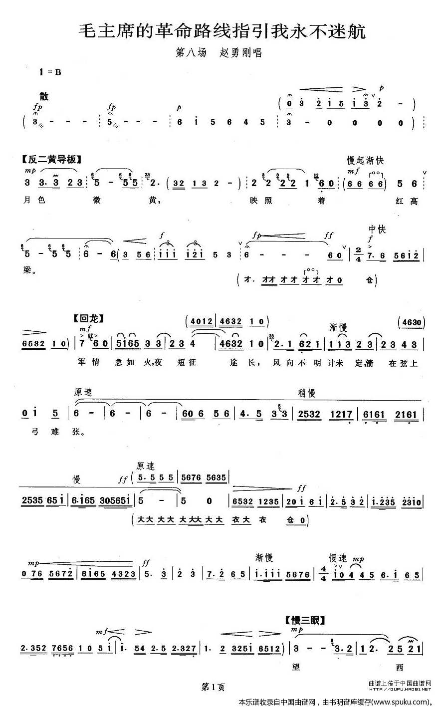 毛主席的革命路线指引我永不迷航 平原作战 赵勇刚唱段 琴谱