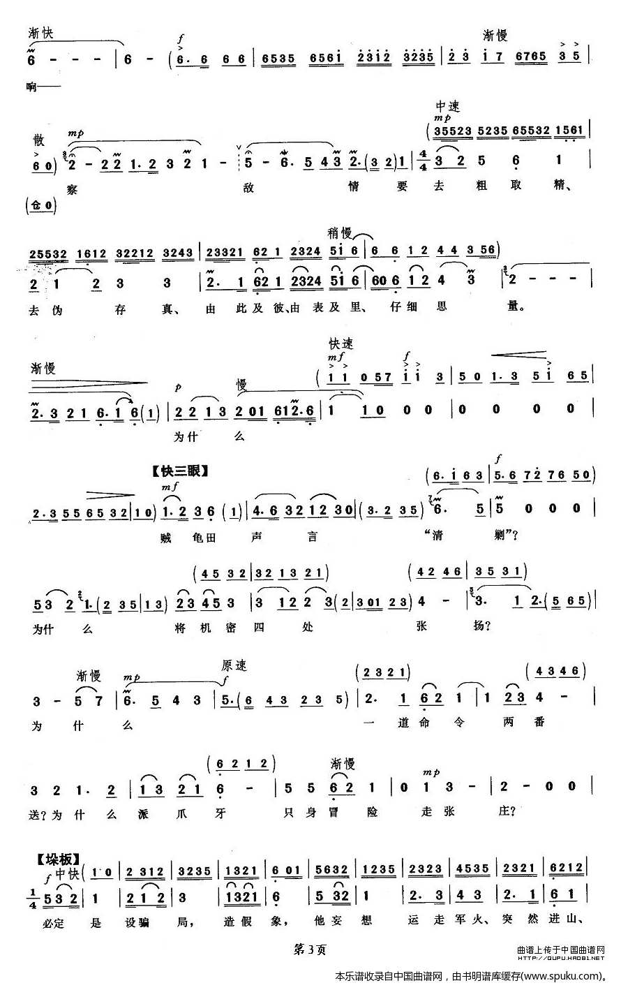 哪里有人民哪里就有赵勇刚 平原作战 李胜唱段 琴谱 京剧戏谱