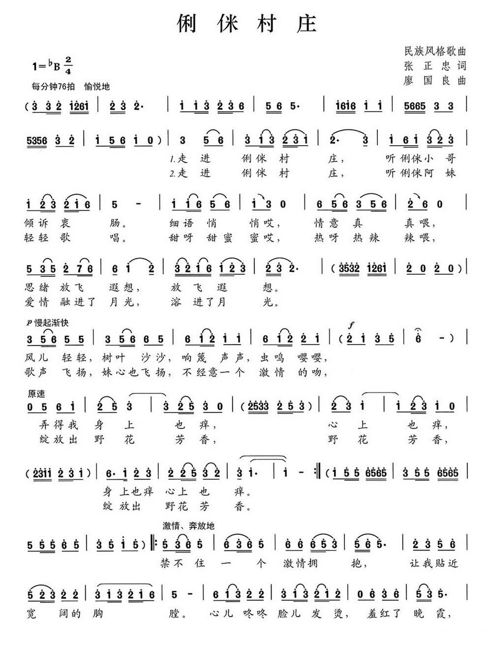 - [歌谱] 俐侎村庄