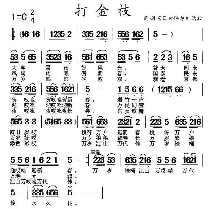 > 闽剧 打金枝 五女拜寿 选段