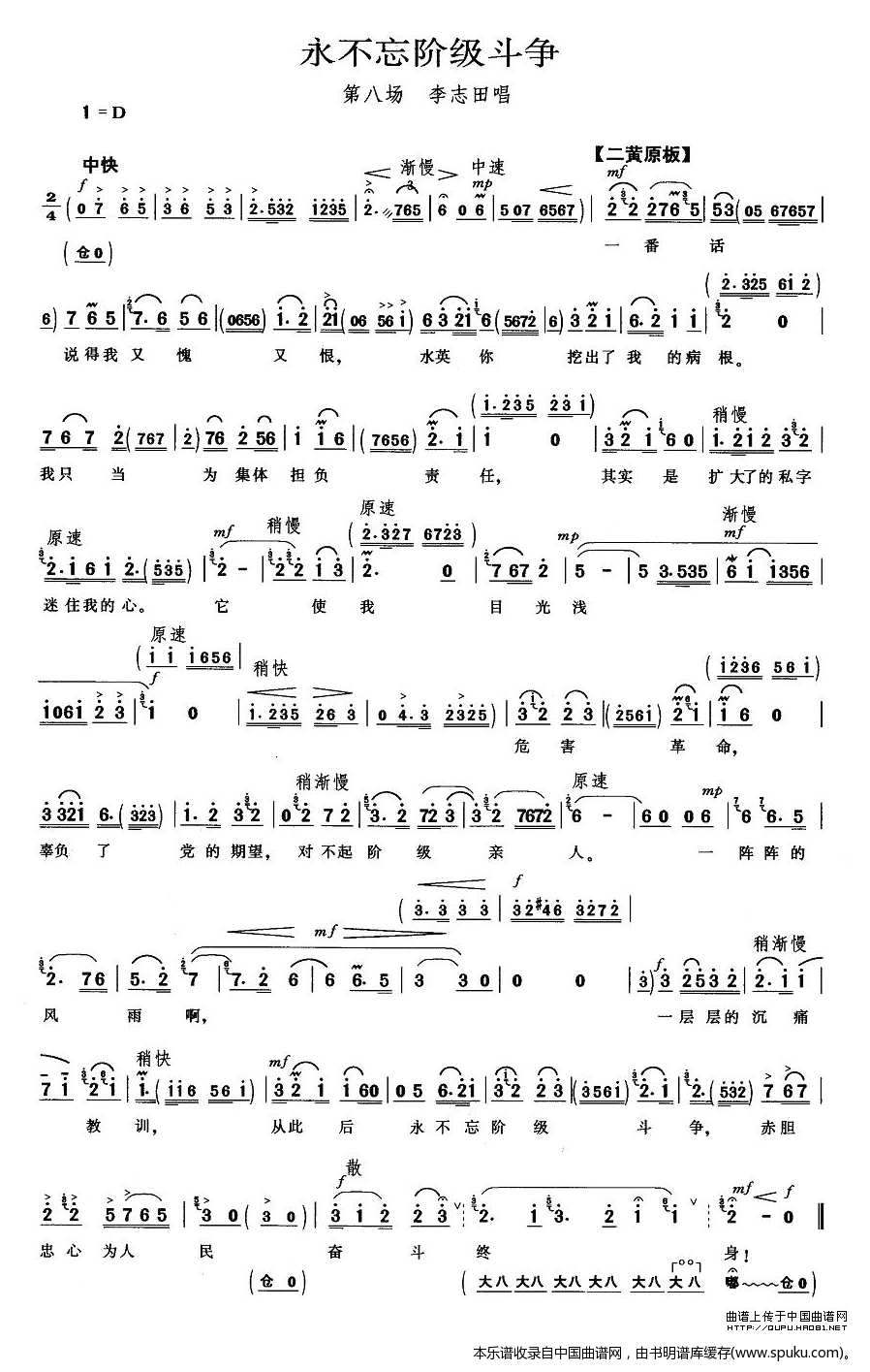 > 永不忘阶级斗争 龙江颂 李志田唱段 京剧戏谱