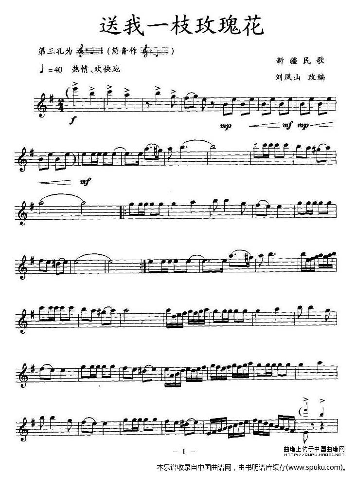 > 送我一枝玫瑰花 竖笛 乐器谱
