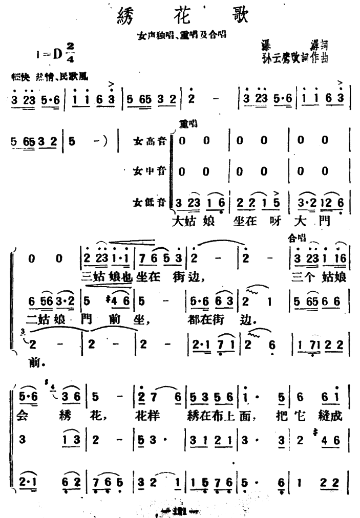 > 绣花歌 孙云鹰改词作曲