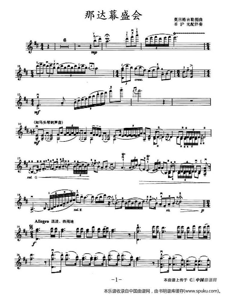 那达幕盛会 提琴谱