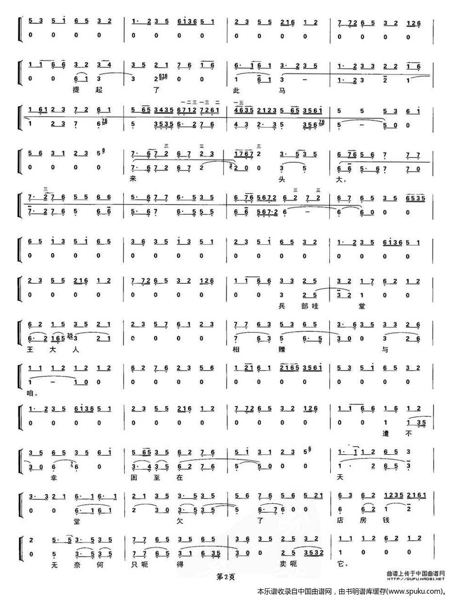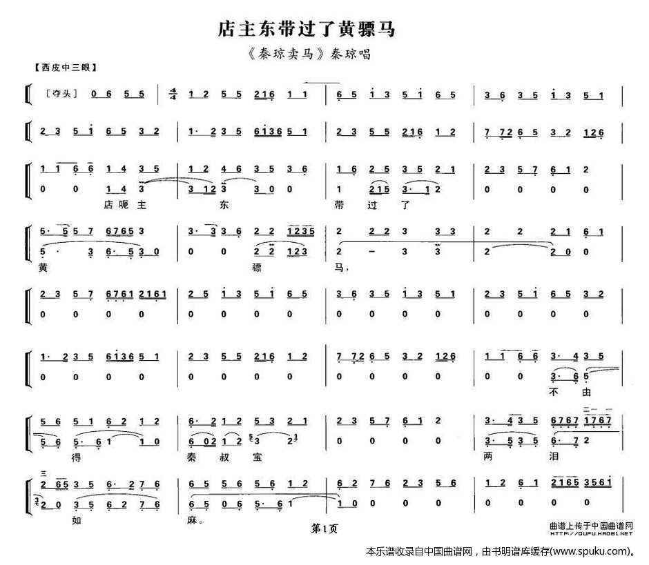 店主东带过了黄骠马 秦琼卖马 秦琼唱段 琴谱