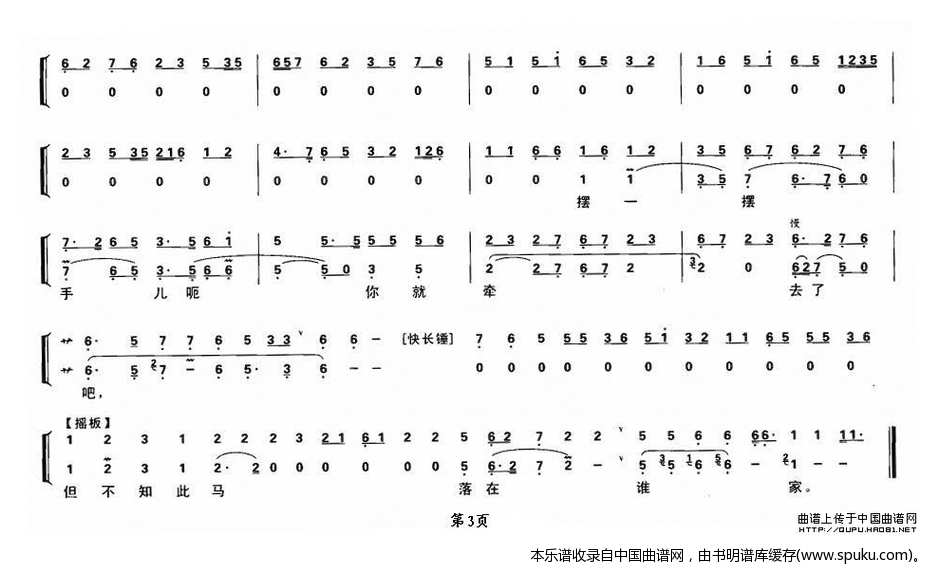 店主东带过了黄骠马 卖马 选段 伴奏谱