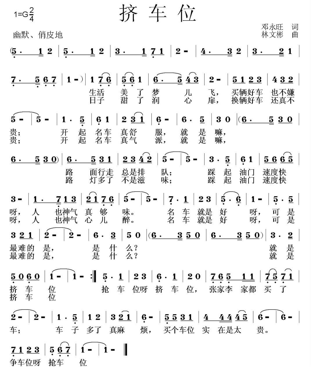 - [歌谱] 找车位 兰州方言版