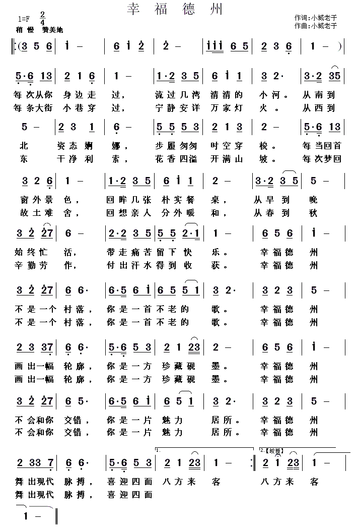 - [歌谱] 春风满小城