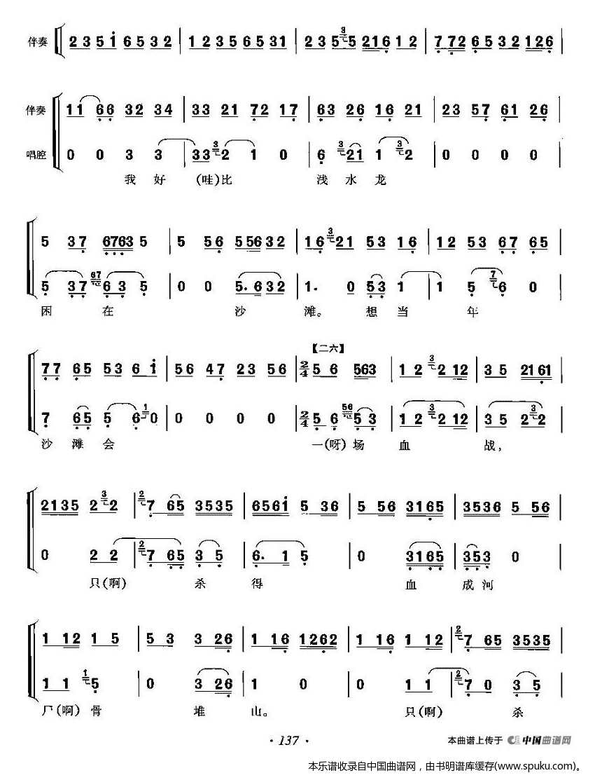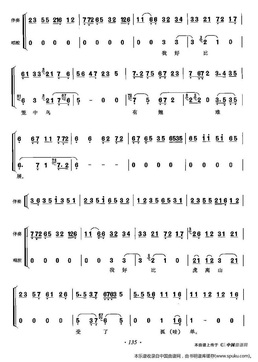 杨延辉坐宫院自思自叹 四郎探母 选段 伴奏谱